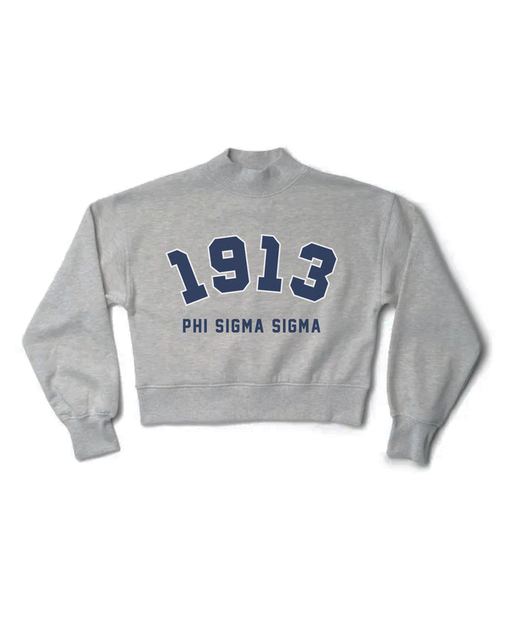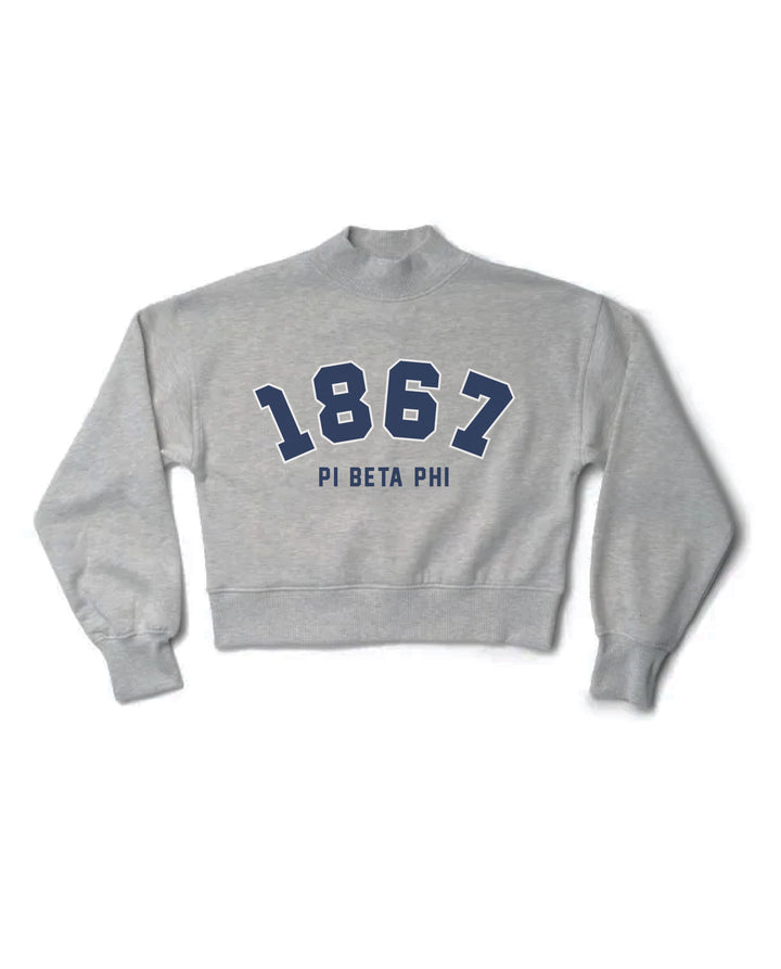 Est Year Heather Grey Sorority Mock Neck Cropped Crewneck