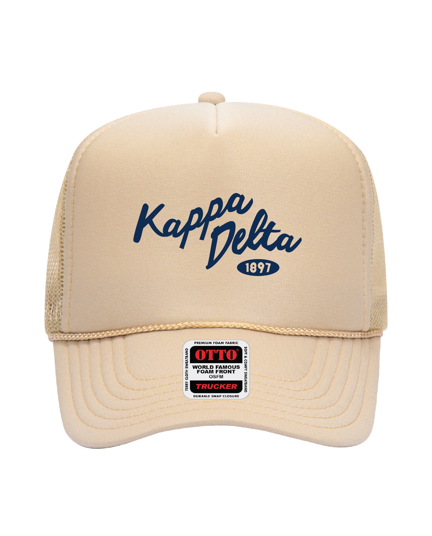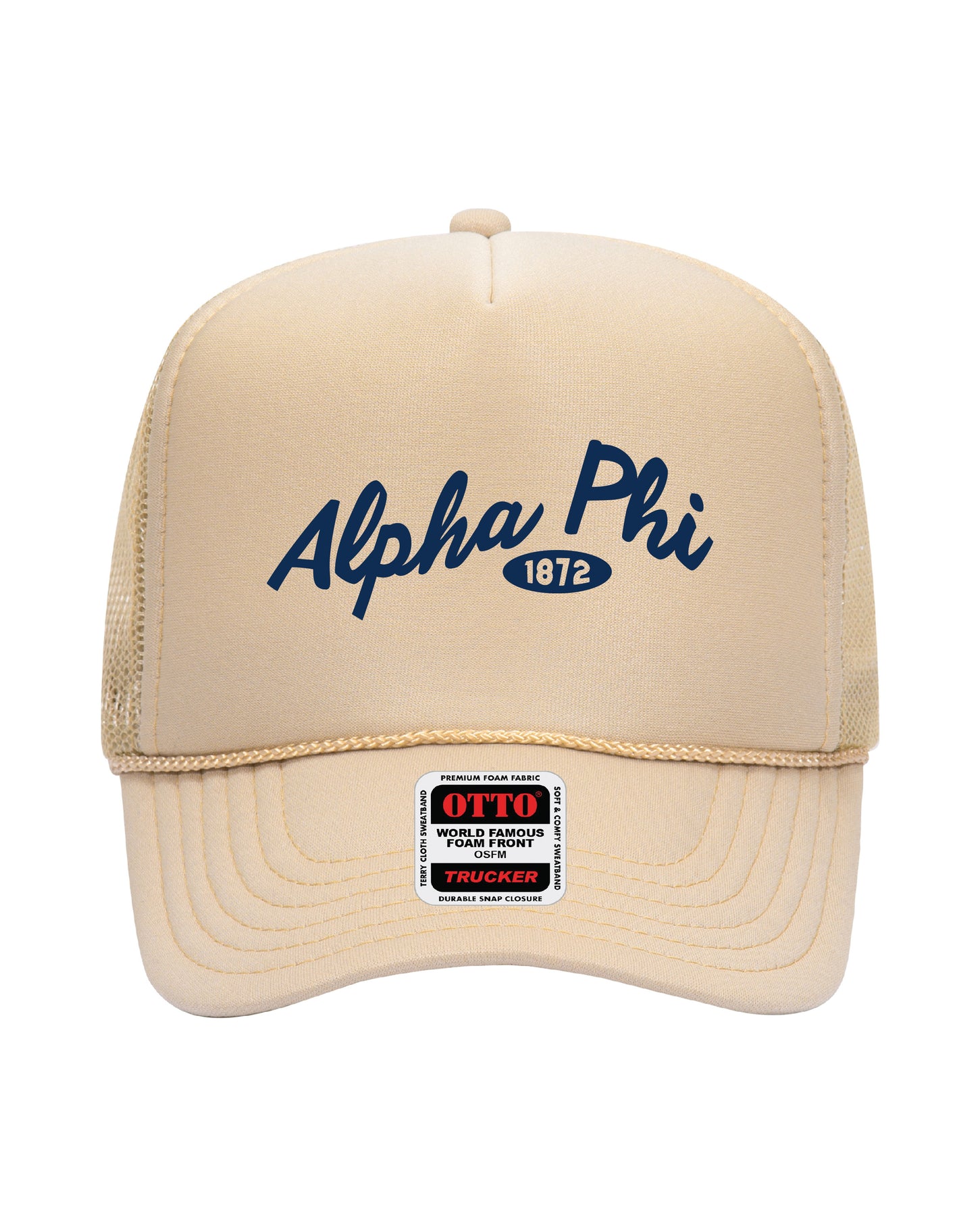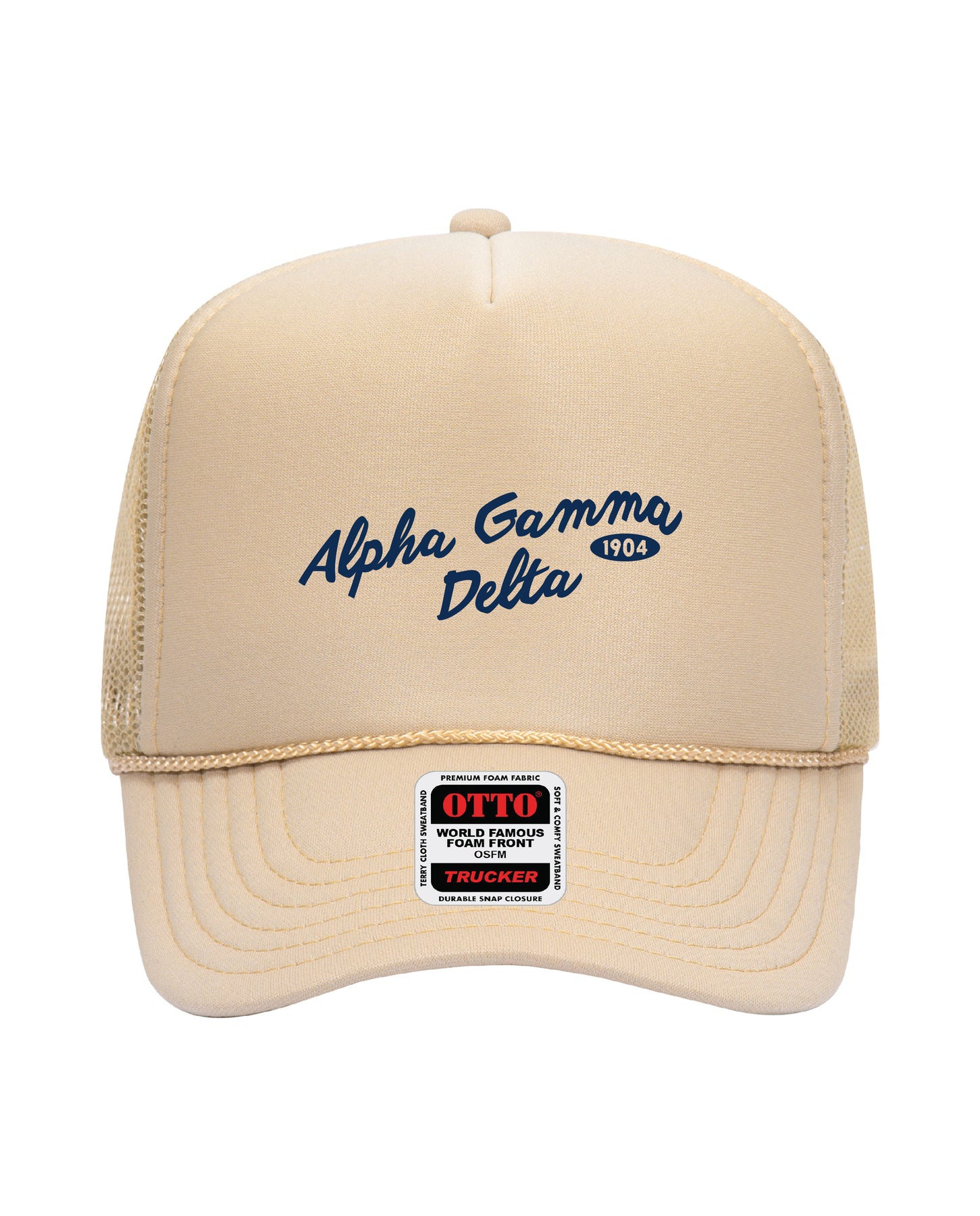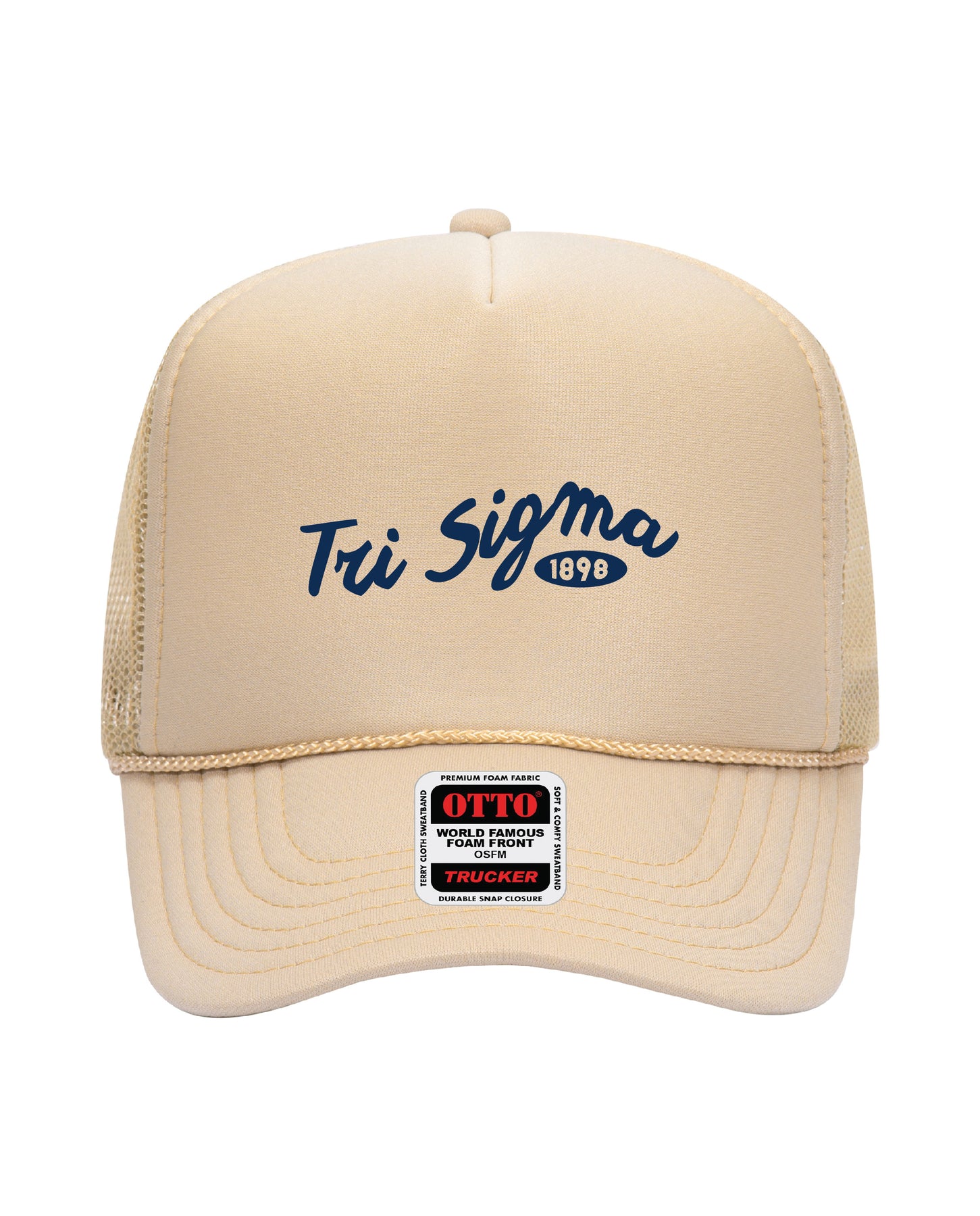Cursive Embroidered Tan Sorority Trucker Hat