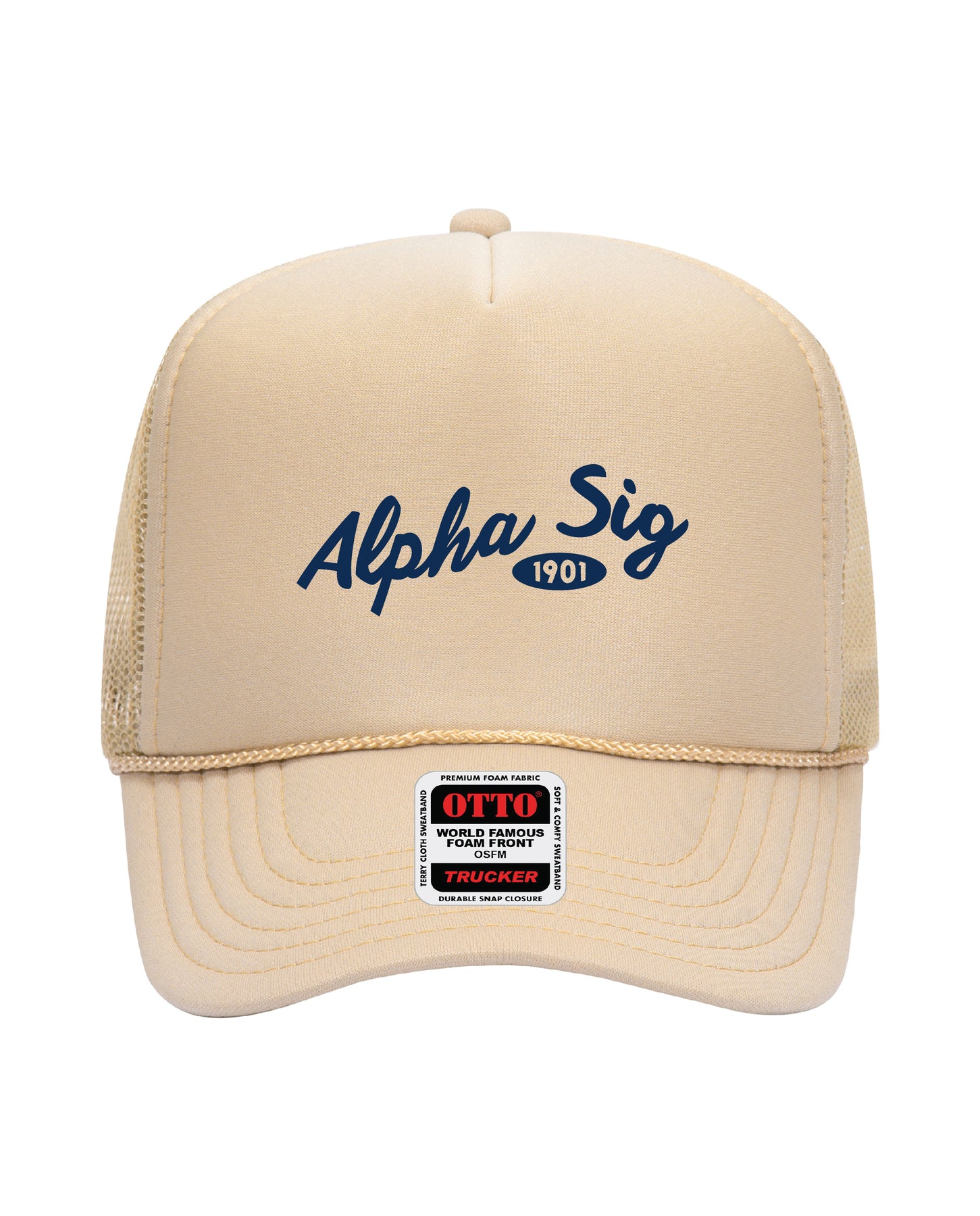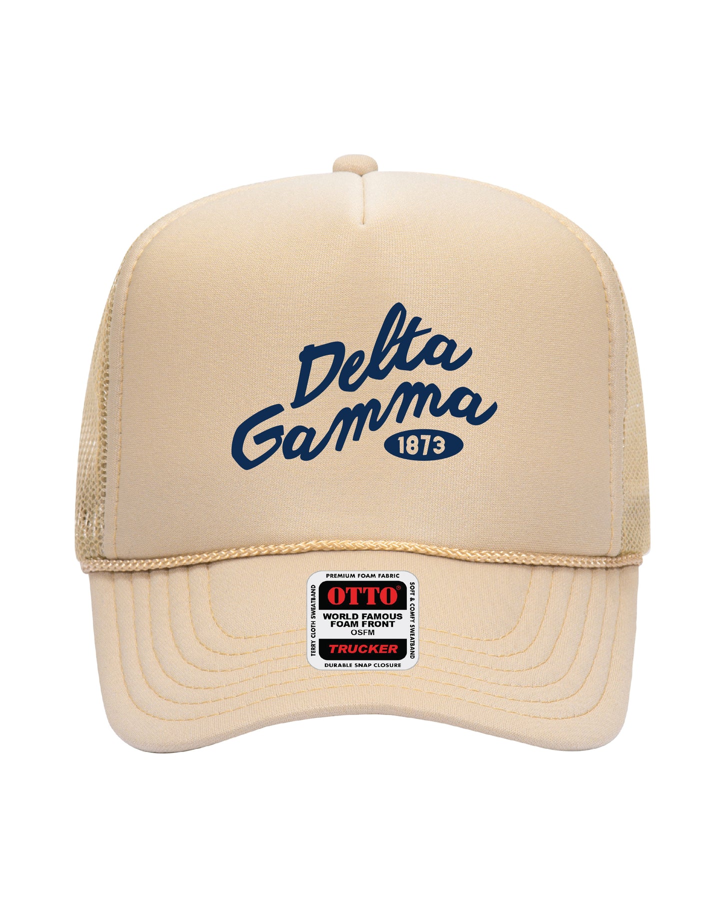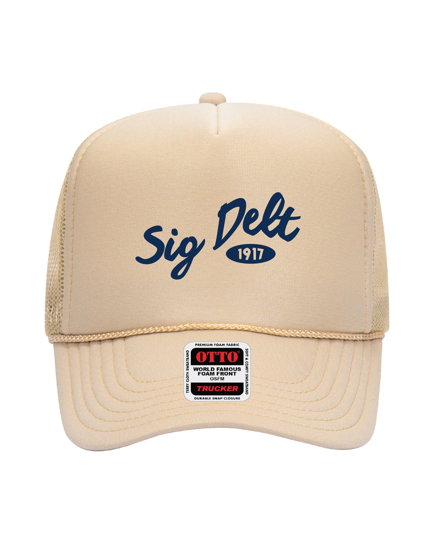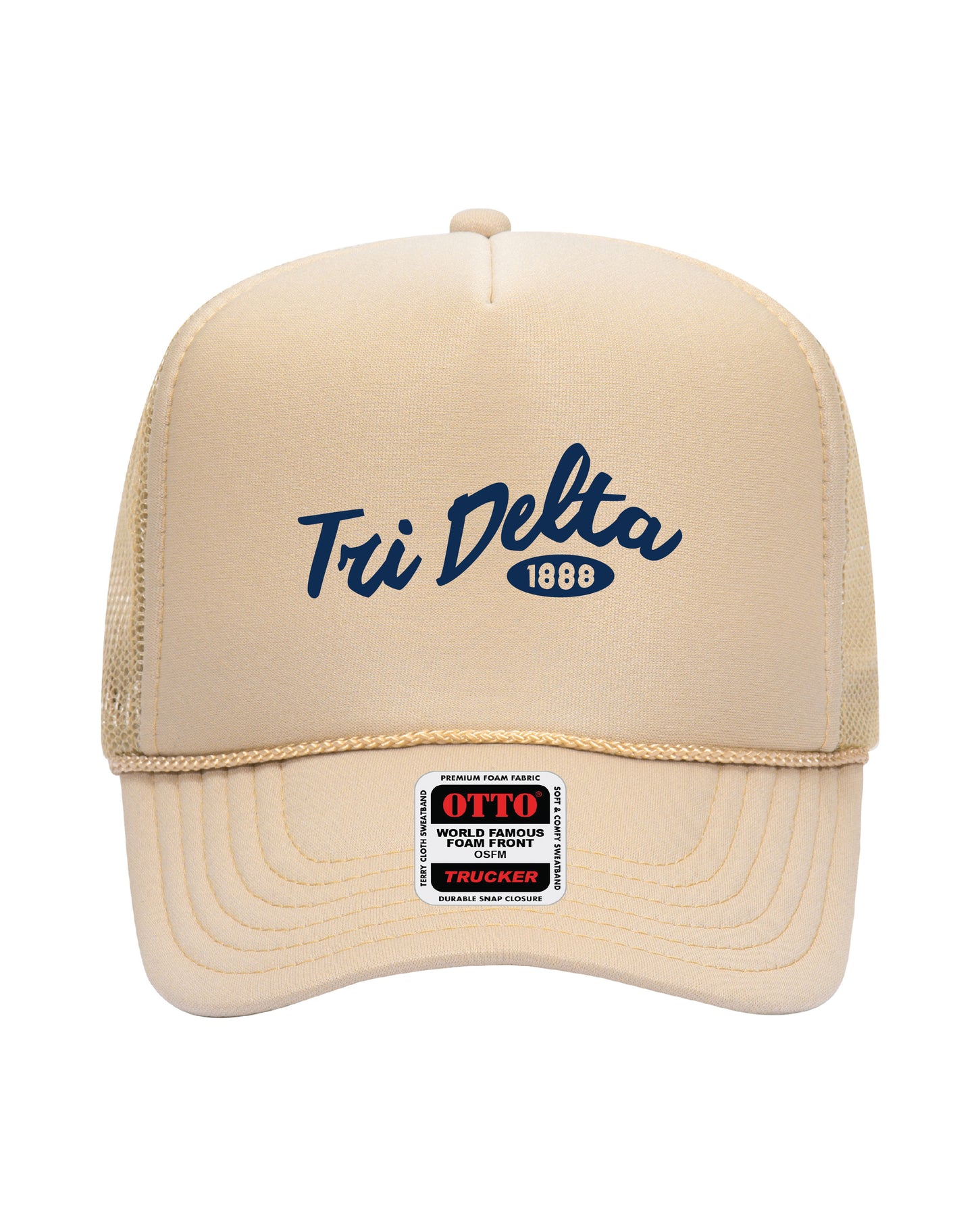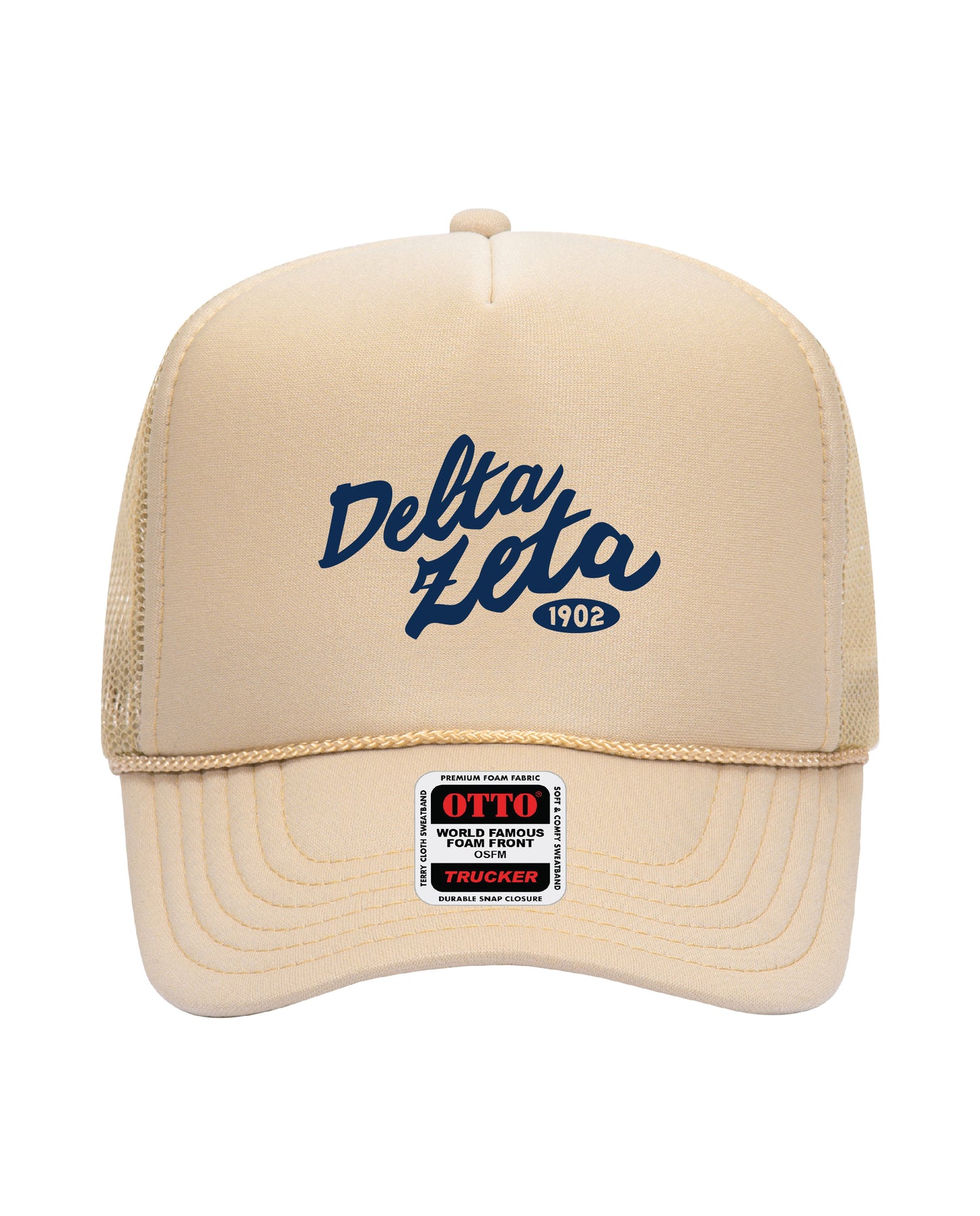 Cursive Embroidered Tan Sorority Trucker Hat