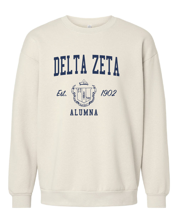 - Indulge in the ultimate comfort with our Alumna Crest Sorority Crewneck. Crafted from a blend of airlume combed and ring-spun cotton and polyester, this crewneck ensures a snug and cozy fit that feels as good as it looks. Elevate your everyday style effortlessly with this must-have addition to your wardrobe.