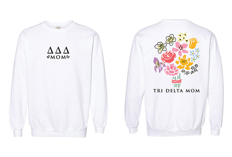 - Indulge in the ultimate comfort with our Bouquet Sorority Mom Crewneck. Crafted from a blend of airlume combed and ring-spun cotton and polyester, this crewneck ensures a snug and cozy fit that feels as good as it looks. Elevate your everyday style effortlessly with this must-have addition to your wardrobe.